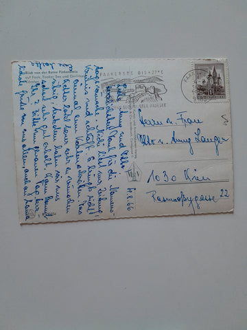 AK Blick von der Ruine Finkenstein auf Faak, Faaker See und Gerlitzen. Gelaufen. Großformat. Verlag: Monopol. Nummeriert: 191034. Zustand: stärker bestoßen.