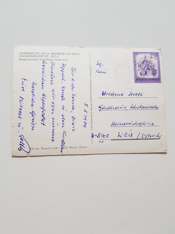 AK Bregenzerwald. Juppenspitze, Mohnenfluh. Hochkünzelspitze. Gelaufen. Großformat. Verlag: Häusle. Zustand: linkes oberes Eck geknickt, sonst leicht bestoßen.