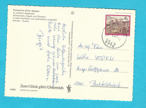AK Afritz Gassen. Gelaufen. Großformat. Verlag: Schilcher. Nummeriert: 5/954. Zustand: gut.