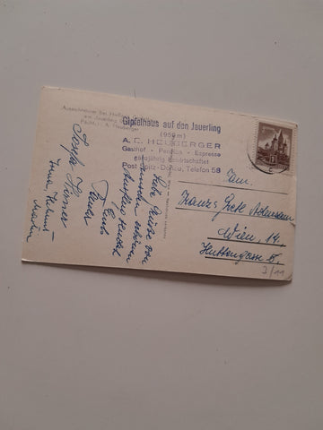 AK Aussichtsturm bei Hiefler's Gipfelhaus am Jauerling. Pächter: A. Heuberger. Gelaufen. Kleinformat. Verlag: Partaj. Zustand: Knick am oberen Rand. mit Einriss.