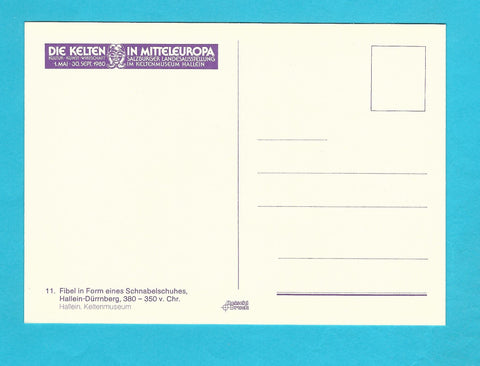 AK Keltenmuseum Hallein. Kelten in Mitteleuropa. Salzburger Landesaussstellung 1980. 11. Fibel in Form eines Schnabelschuhes Hallein-Dürrnberg, 380-350 v. Chr. Ungelaufen. Großformat. Zustand: gut.