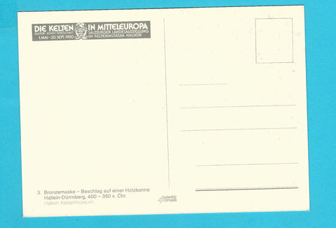 AK Keltenmuseum Hallein. Kelten in Mitteleuropa. Salzburger Landesaussstellung 1980. 3. Bronzemaske - Beschlag auf einer Holzkanne. Hallein-Dürrnberg 400-350 v. Chr.  Ungelaufen. Großformat. Zustand: gut.