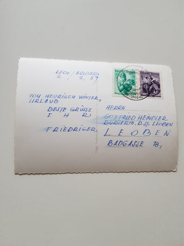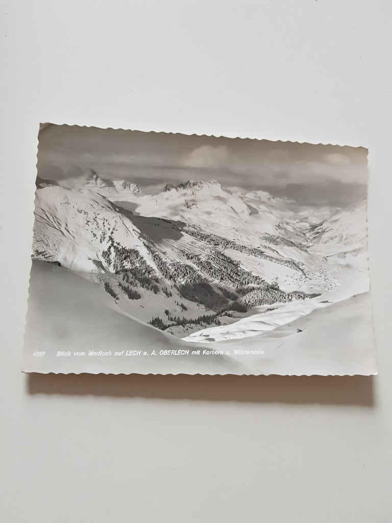 AK Blick vom Madloch auf Lech am Arlberg. Oberlech. Gelaufen. Großformat. Verlag: Rhomberg. Nummeriert: 4287. Zustand: gut, linkes oberes Eck angeknickt.