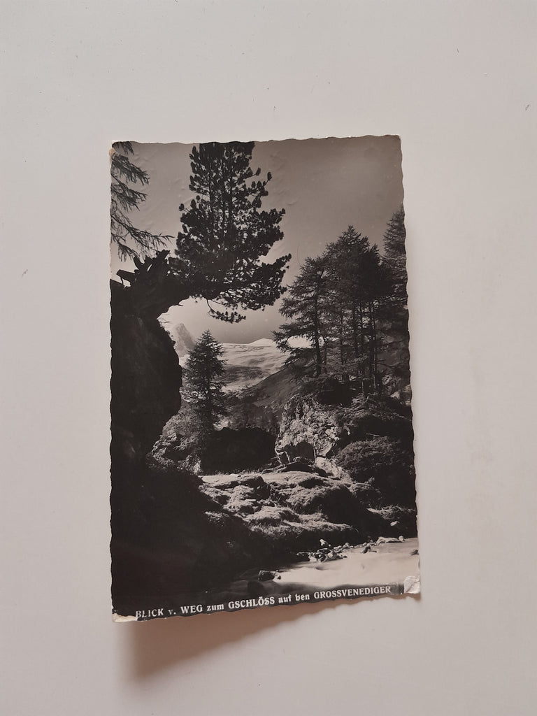 AK Blick v. Weg zum Gschlöss auf den Grossvenediger. Gelaufen. Kleinformat. Verlag: Lottersberger. Zustand: untere Ecken angestoßen.