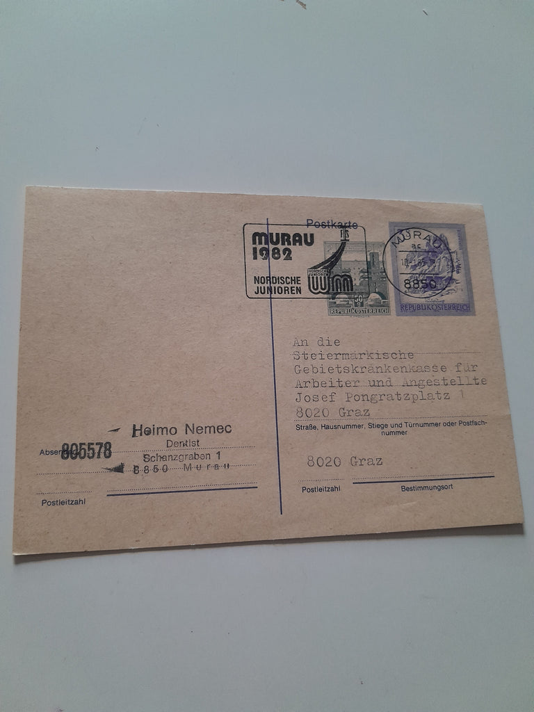 Postkarte Gelaufen in Murau 1985. Gelaufen. Großformat. Zustand: gut.