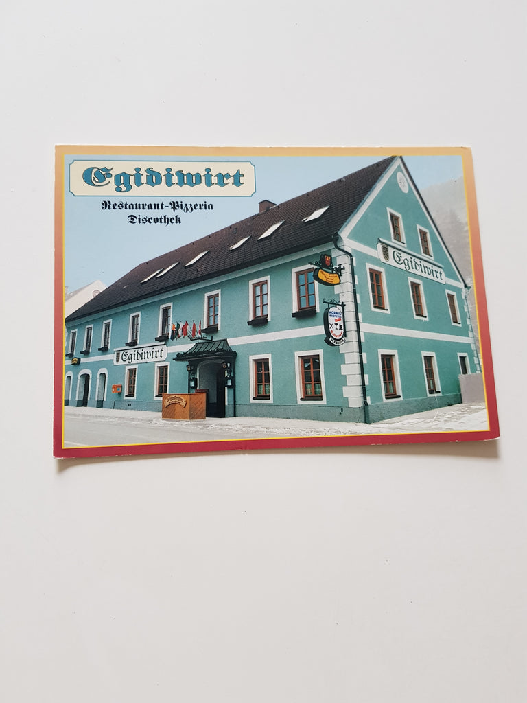 AK Murau. Egidiwirt. Restaurant Pizzeria Discothek. Familie Leypold. St. Egidi 82. Ungelaufen. Großformat. Verlag: Hruby. Nummeriert: 11289. Zustand: gut, wenig bestoßen.