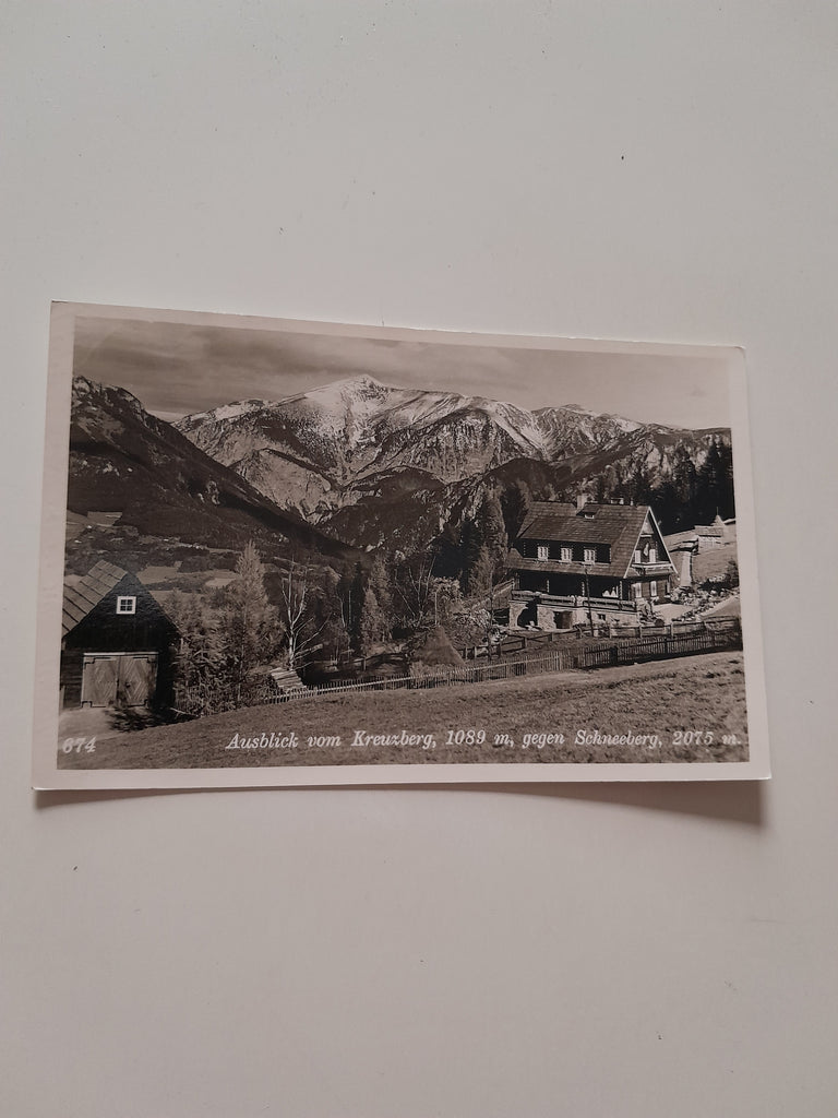 AK Ausblick vom Kreuzberg gegen Schneeberg. Gelaufen. Kleinformat. Verlag: Schneidhofer. Nummeriert: 674. Zustand: gut.