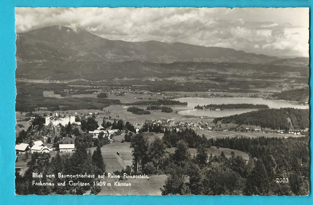 AK Blick vom Baumgartnerhaus auf Ruine Finkenstein, Faakersee und Gerlitzen. Gelaufen. Kleinformat. Verlag: Aufnahme Österreichischer Heimatbilder. Nummeriert: 2003. Zustand: gut.