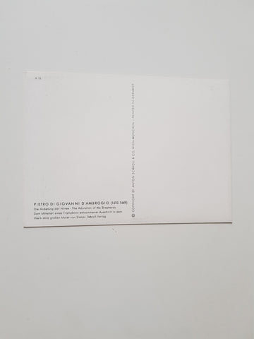 AK Anbetung der Hirten. Pietro di Giovanni d'Ambrogio. Ungelaufen. Großformat. Verlag: Scroll & Co. Nummeriert: 76. Zustand: gut.