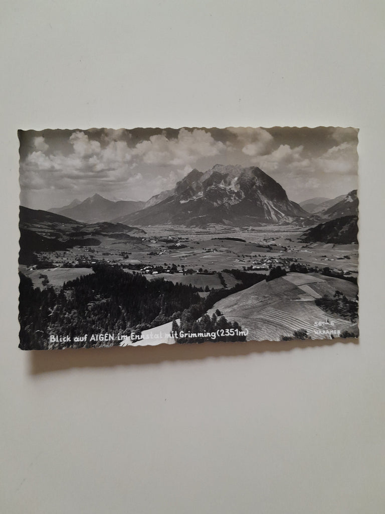 AK Blick auf Aigen im Ennstal mit Grimming. Gelaufen. Kleinformat. Verlag: Kramer. Nummeriert: 561-6. Zustand: gut.