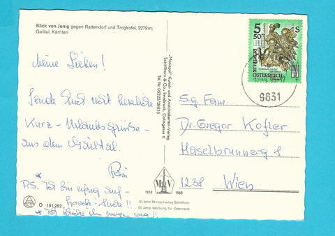 AK Blick von Jenig gegen Rattendorf und Trogkofel. Gelaufen. Großformat. Verlag: Monopol. Nummeriert: O 191282. Zustand: gut.
