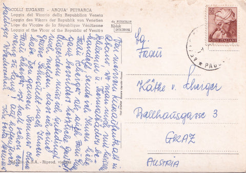 AK Arquà Petrarca. Loggia del Vicario della Repubblica Veneta. Gelaufen. Großformat. Verlag: A.B.A. Zustand: obere Ecken geknickt, Einsriss am oberen Rand.