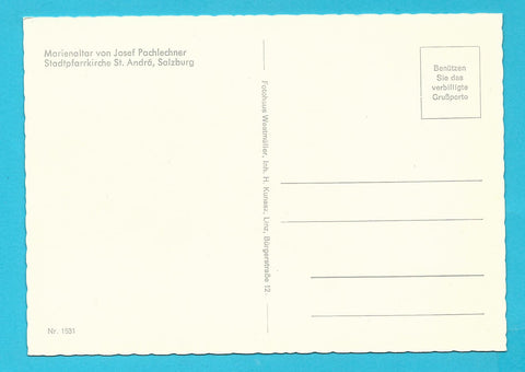 AK Stadtpfarrkirche St. Andrä, Salzburg. Marienaltar von Josef Pachlechner. Ungelaufen. Großformat. Verlag: Westmüller. Nummeriert: 1531. Zustand: gut, leicht bestoßen.