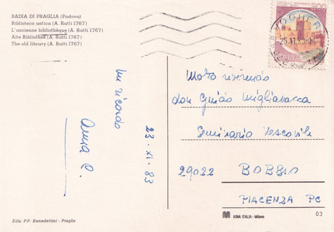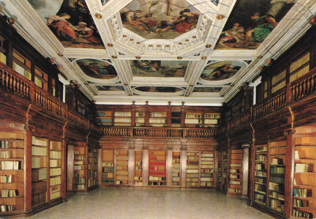 AK Badia di Praglia. Biblioteca antica. Gelaufen. Großformat. Zustand: stärker bestoßen.