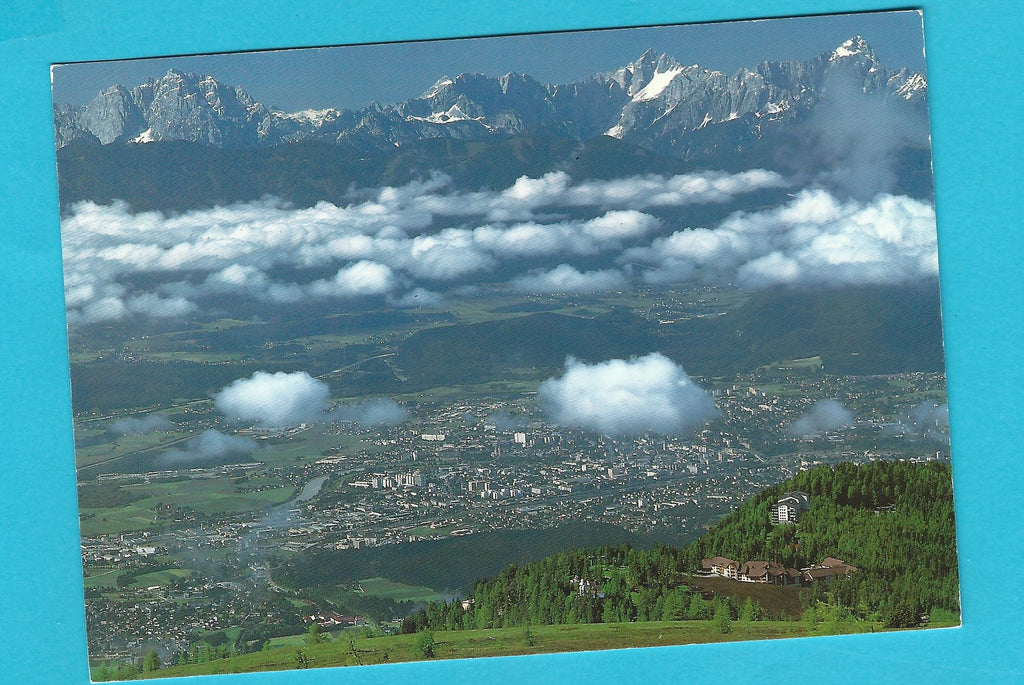 AK Aussichtsberg Gerlitzen. Panoramablick vom Gipfel auf Villach. Gelaufen. Großformat. Verlag: Schilcher. Zustand: Knicke über der rechten Bildhälfte.