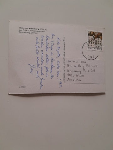 AK Blick vom Kreuzberg auf Edlach, Hirschwang und Schneeberg. Gelaufen. Großformat. Nummeriert: 77832. Zustand: Knicke.