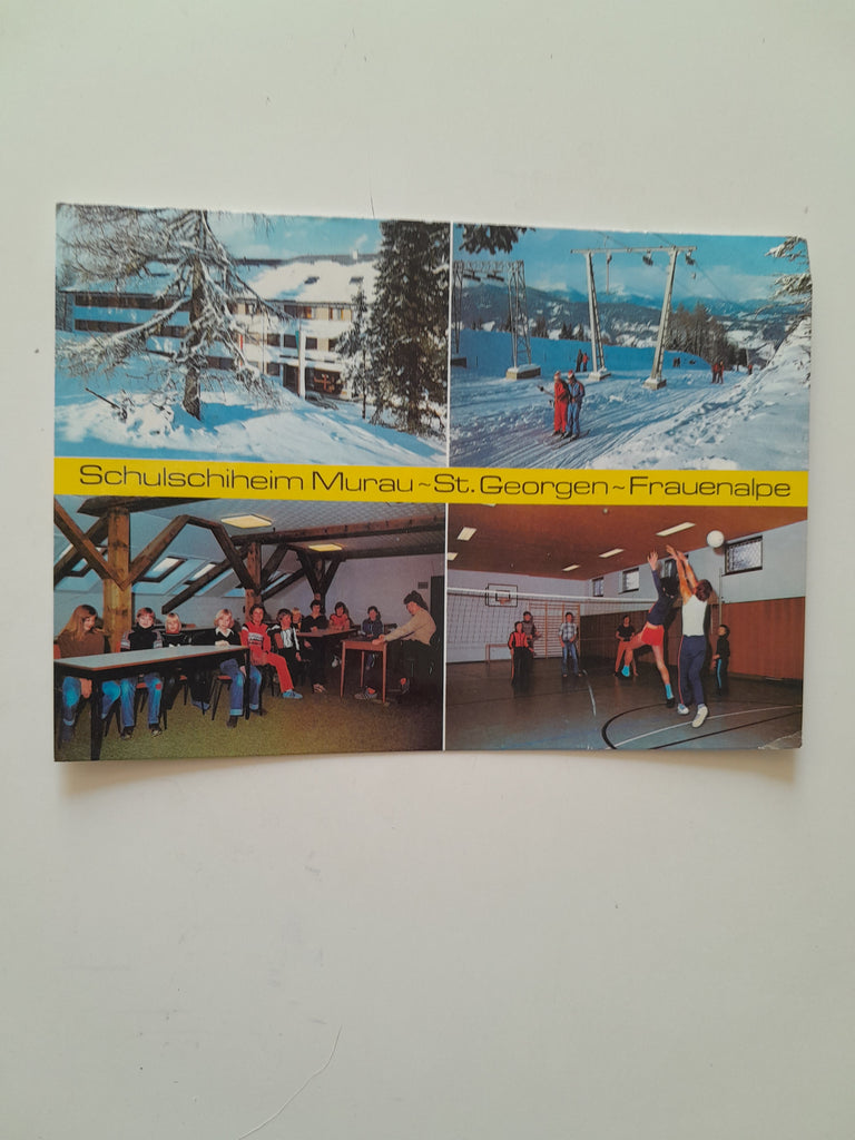 AK Schulschiheim Murau. St. Georgen Frauenalpe. Gelaufen. Großformat. Verlag: Mlakar. Zustand: rechte Ecken geknickt.