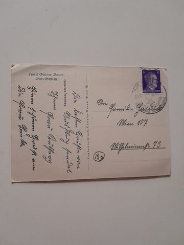 AK Badgastein. Hotel Grüner Baum. Gelaufen. Großformat. Zustand: Ecken obere Ecken und am oberen Rand geknickt.