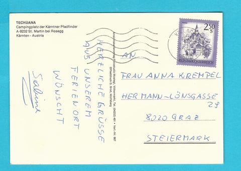 AK Techuana. Campingplatz der Kärntner Pfadfinder. St. Martin bei Rosegg. Gelaufen. Großformat. Verlag: Mostegl. Nummeriert: 667. Zustand: gut.