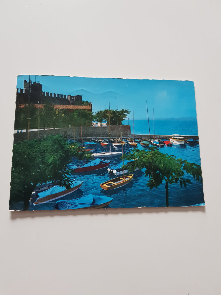 AK Torri del Benaco. Lago di Garda. Porto e Castello. Gelaufen. Großformat.  Nummeriert: 129. Zustand: leicht bestoßen.
