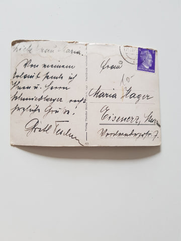 AK Blick gegen Montasch u. Wischberg v.d. Villacheralpe. (1941) Gelaufen. Kleinformat. Verlag: Strein. Nummeriert: 423. Zustand: stark bestoßen.