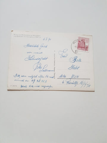 AK Blick vom Muttersberg auf Bludenz. Gelaufen. Großformat. Verlag: Risch-Lau. Nummeriert: 30374. Zustand: gut, rechtes unteres Eck angeknickt.