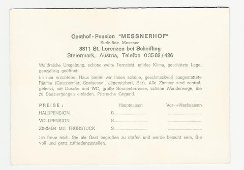 Werbe-AK St. Lorenzen bei Scheifling. Gasthof Pension Messnerhof. Rudolfine Messner. Großformat. Zustand: gut.